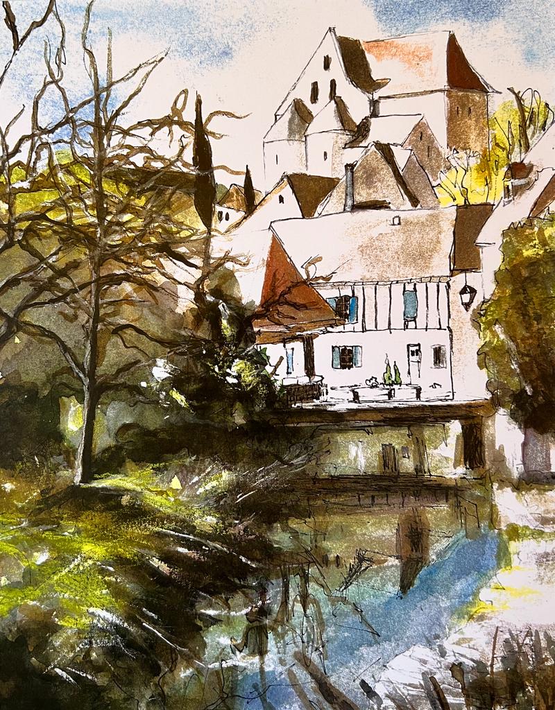 Lot rochers fantômes de la valleé de l’Ouysse – technique mixte 40 x 55 cm Creysse – Aquarelle 23 x 29 cm rochers fantômes de la vallée de la Dordogne – acrylique sur bois 45 x 60 cm marché à Martel – aquarelle 24 x 24 cm