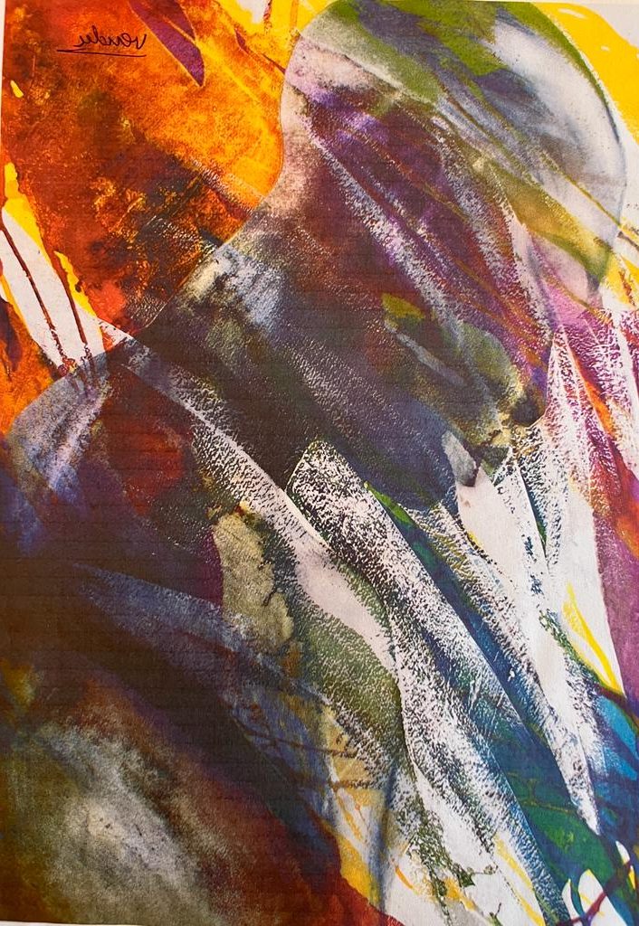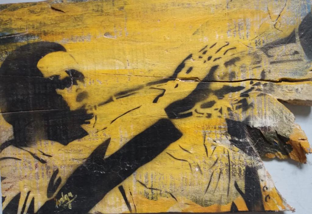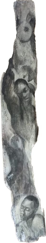 miscellanées fusions resplendissantes – fusain et acrylique sur bois 40 x 200 cm tête enchantée – encre colorée sur papier 48 x 73 cm Jazz à Souillac – pochoir sur bois 41 x 29 cm